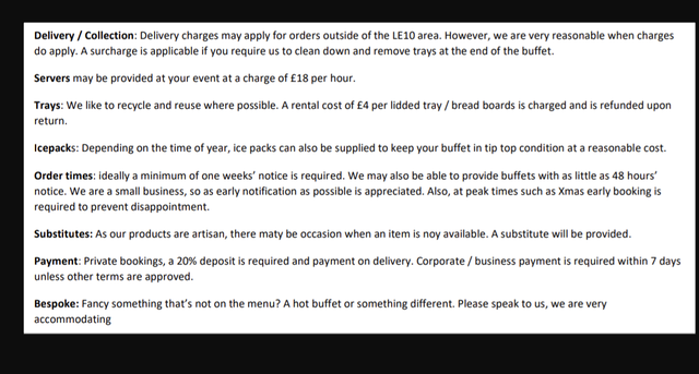 Plates napkins and cutlery supplied as applicable. £6.00 per head (Min 10 persons) Please refer to the photo for full menu.