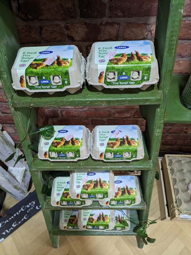 Free range Melton Mowbray eggs size large. 6 per pack. Local delivery only.