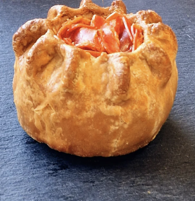 Handmade topped pork pies 160g feeds two or one if you love pork pies.